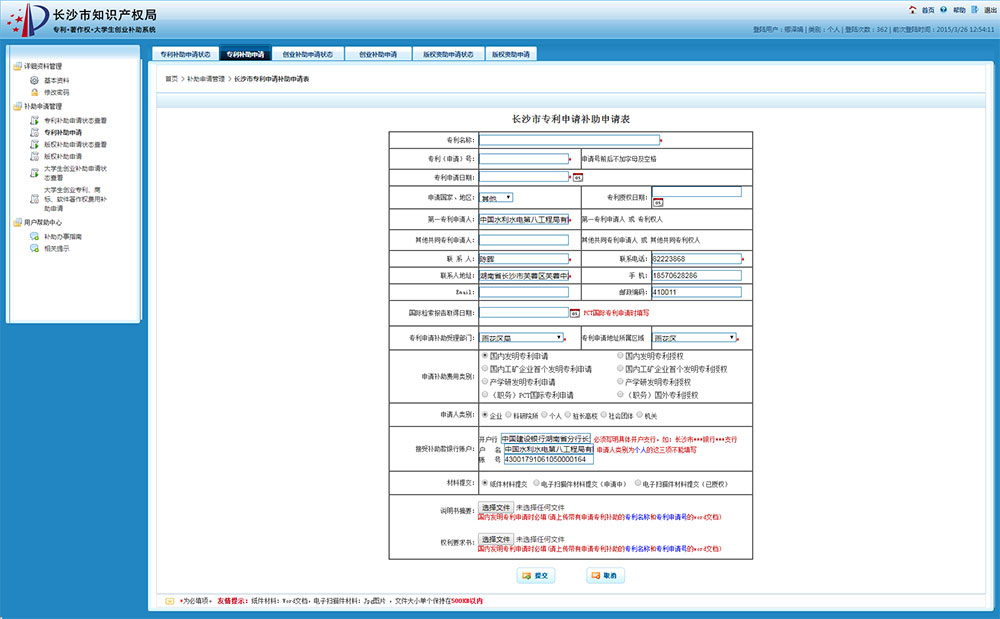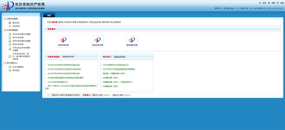 長(zhǎng)沙市知識(shí)產(chǎn)權(quán)局 專利申請(qǐng)補(bǔ)助 大學(xué)生創(chuàng)業(yè)補(bǔ)助 著作權(quán)登記補(bǔ)助 網(wǎng)上申報(bào)系統(tǒng)