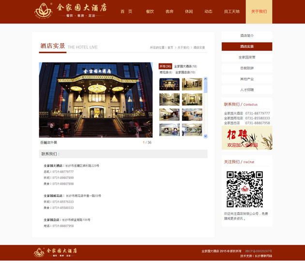 全家園大酒店按五星級標(biāo)準(zhǔn)建造的集客房、餐飲、康樂為一體的綜合型高端商務(wù)精品酒店 。網(wǎng)站上不僅展示了全家園大酒店,還展示了全家園雨花店、老店,及全家園實業(yè)旗下的四一農(nóng)業(yè)、濱江會所等??蓪崿F(xiàn)在線的餐飲預(yù)定、客房預(yù)定、足浴預(yù)定,及行政管理中的人才招聘等。