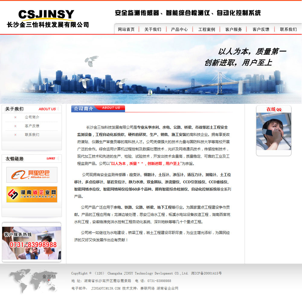 長沙金三怡科技發(fā)展有限公司是專業(yè)從事水利、水電、公路、橋梁、市政等巖土工程安全監(jiān)測設備,工程自動化系統(tǒng)軟、硬件的研發(fā)、生產(chǎn)、銷售、施工安裝的高科技企業(yè)。擁有享受政府津貼、儀器生產(chǎn)審查員等的高科技人才。公司憑借強大的技術力量與國防科技大學等高校開展廣泛的合作。綜合運用計算機過程控制及數(shù)據(jù)處理技術,光纖及網(wǎng)絡通訊技術,傳感控制技術,現(xiàn)代加工技術和先進的生產(chǎn)、檢驗、試驗技術,開發(fā)出技術含量高,質量穩(wěn)定、可靠的工業(yè)及工程監(jiān)測產(chǎn)品。公司以
