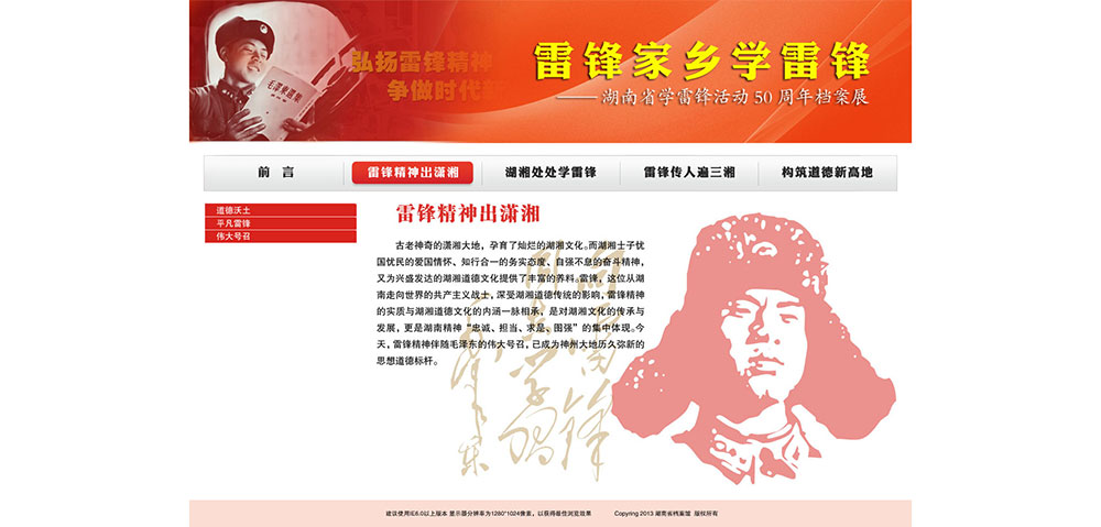 雷鋒家鄉(xiāng)學(xué)雷鋒 - 湖南省學(xué)習(xí)雷鋒活動50周年檔案展
