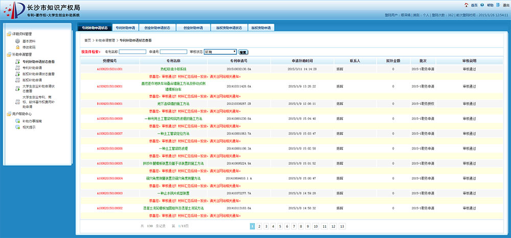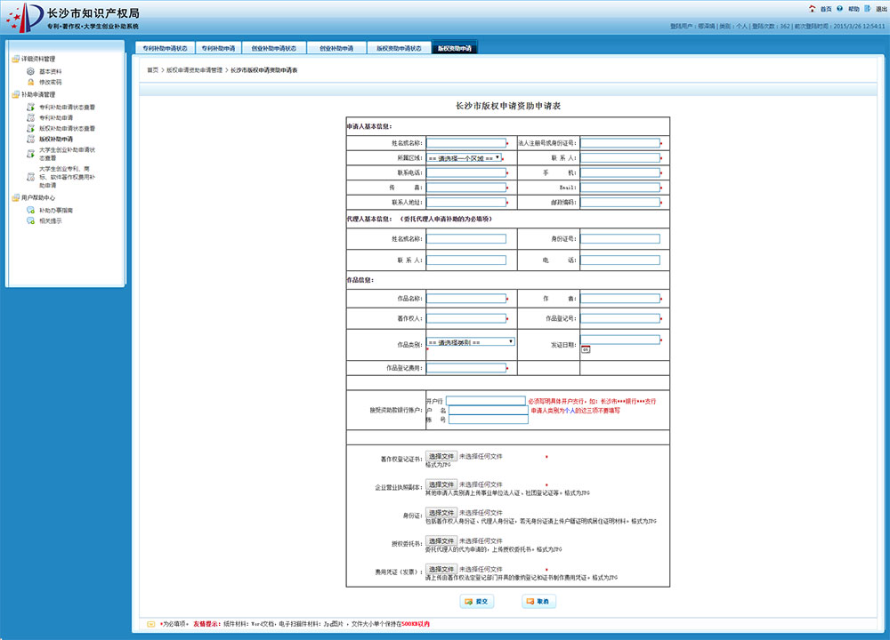 長(zhǎng)沙市知識(shí)產(chǎn)權(quán)局 專利申請(qǐng)補(bǔ)助 大學(xué)生創(chuàng)業(yè)補(bǔ)助 著作權(quán)登記補(bǔ)助 網(wǎng)上申報(bào)系統(tǒng)