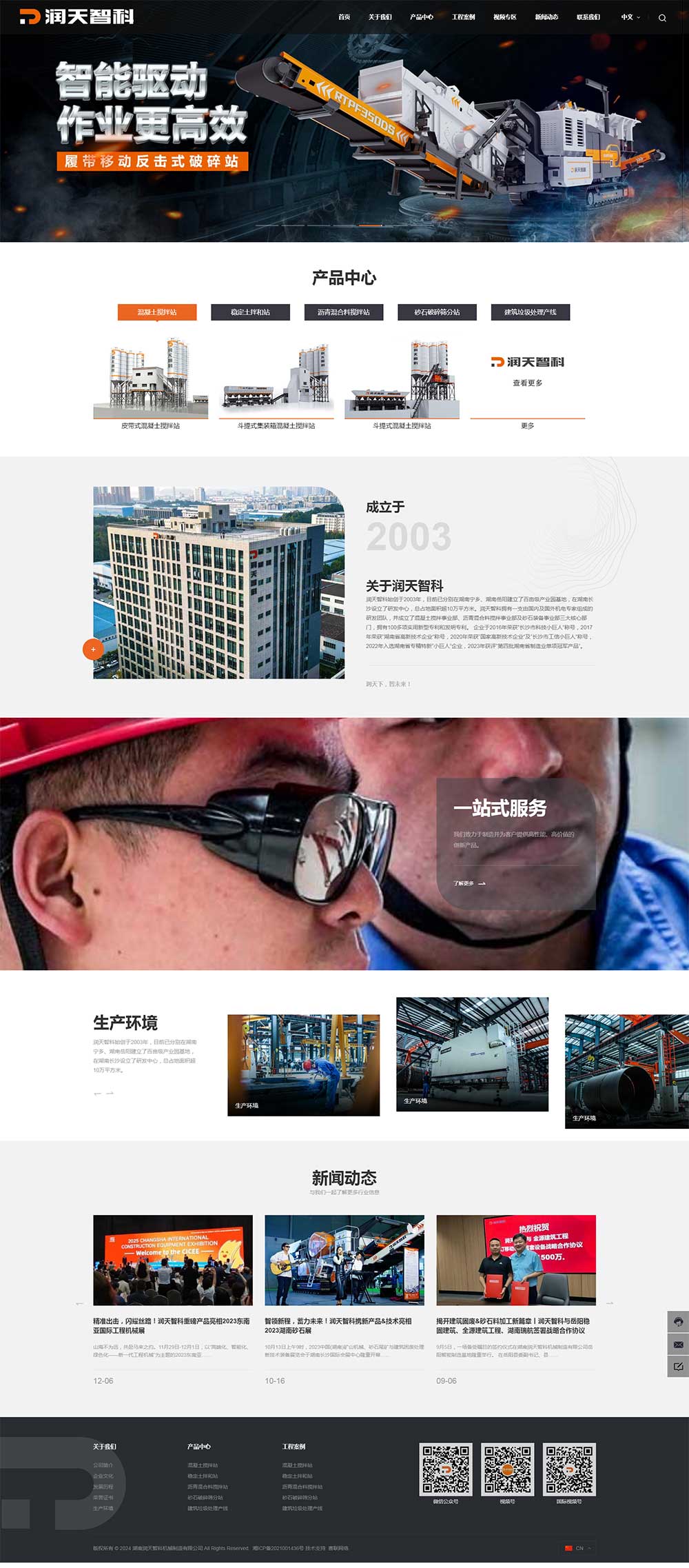 潤天智科始創(chuàng)于2003年,目前已分別在湖南寧鄉(xiāng)、湖南岳陽建立了百畝級產(chǎn)業(yè)園基地,在湖南長沙設(shè)立了研發(fā)中心,總占地面積超10萬平方米。潤天智科擁有一支由國內(nèi)及國外機(jī)電專家組成的研發(fā)團(tuán)隊(duì),并成立了混凝土攪拌事業(yè)部、瀝青混合料攪拌事業(yè)部及砂石裝備事業(yè)部三大核心部門,擁有100多項(xiàng)實(shí)用新型專利和發(fā)明專利。