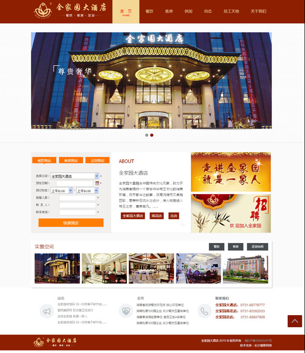 全家園大酒店按五星級標(biāo)準(zhǔn)建造的集客房、餐飲、康樂為一體的綜合型高端商務(wù)精品酒店 。網(wǎng)站上不僅展示了全家園大酒店,還展示了全家園雨花店、老店,及全家園實業(yè)旗下的四一農(nóng)業(yè)、濱江會所等??蓪崿F(xiàn)在線的餐飲預(yù)定、客房預(yù)定、足浴預(yù)定,及行政管理中的人才招聘等。
